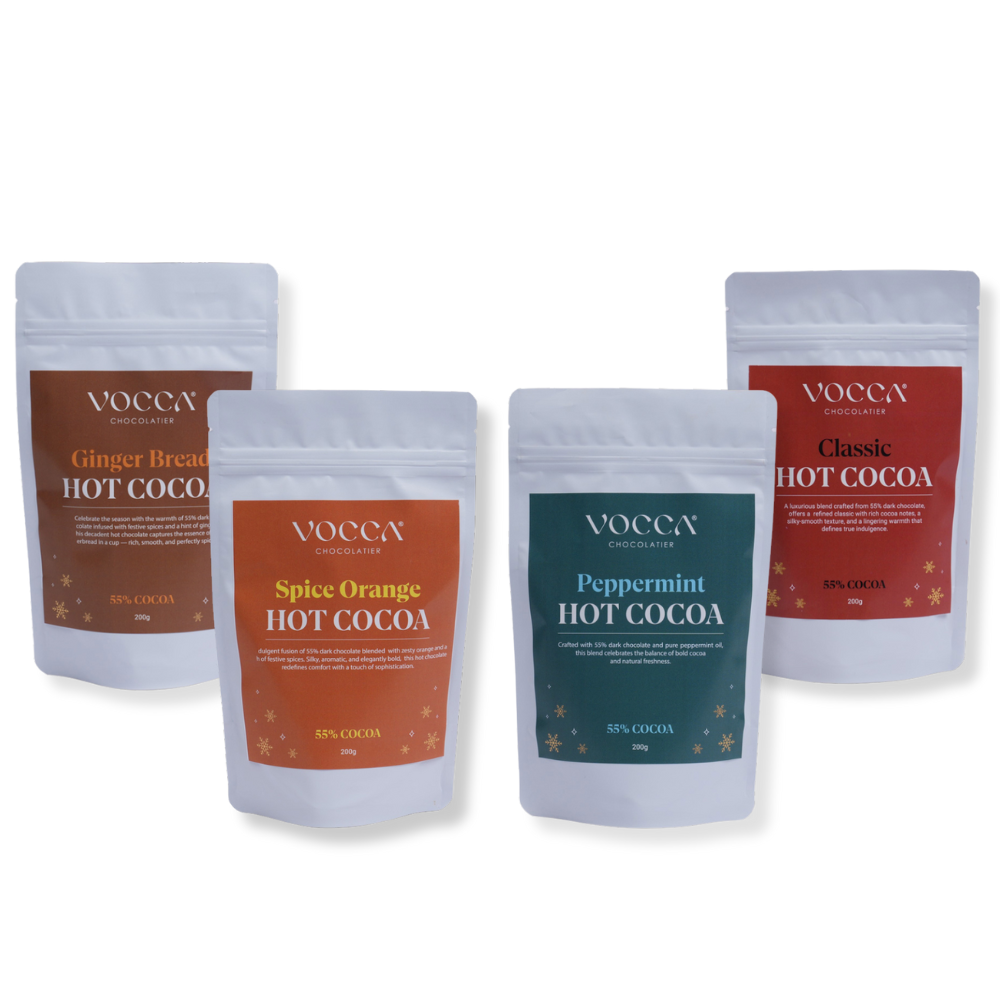 Experience comfort in every cup with our Hot Chocolate Collection, a warm, indulgent blend of festive and classic flavours crafted to elevate your cozy moments. Enjoy the rich simplicity of Classic Chocolate, the cool wintery freshness of Peppermint, the bold citrus twist of Dark Orange, and the nostalgic holiday spice of Gingerbread. Each flavour is crafted with premium chocolate to bring you the perfect sip of warmth this season!