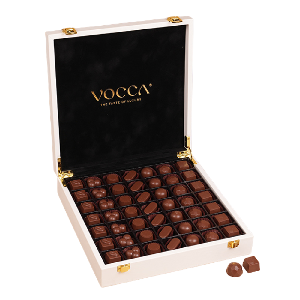 An exquisite selection of 98 handcrafted pralines, thoughtfully curated to showcase refined flavours and delicate finishes. Designed for elegant occasions, this collection offers a luxurious tasting experience in every bite.
