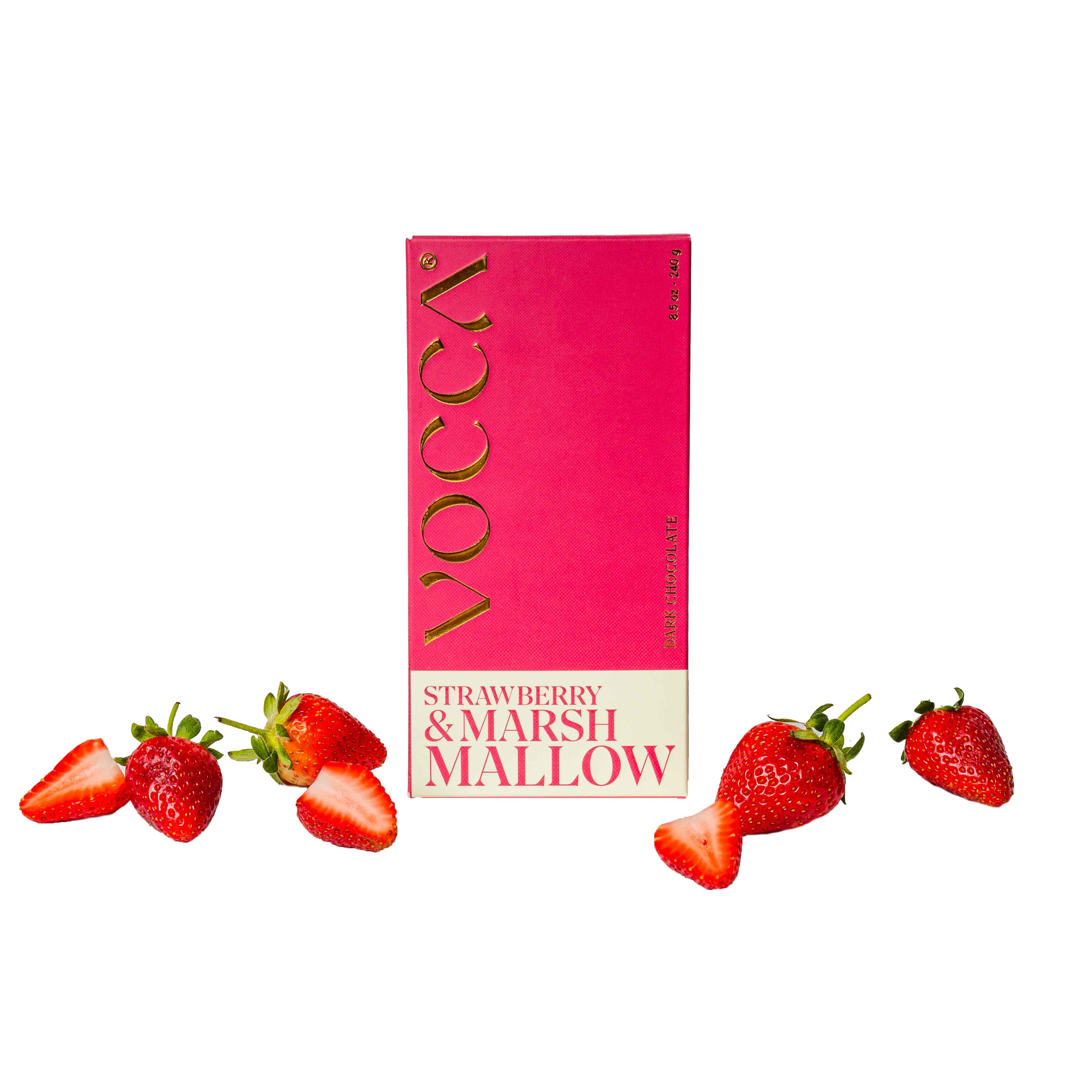Strawberry and Marshmallows enrobed in luxurious pure Belgian dark chocolate Bar