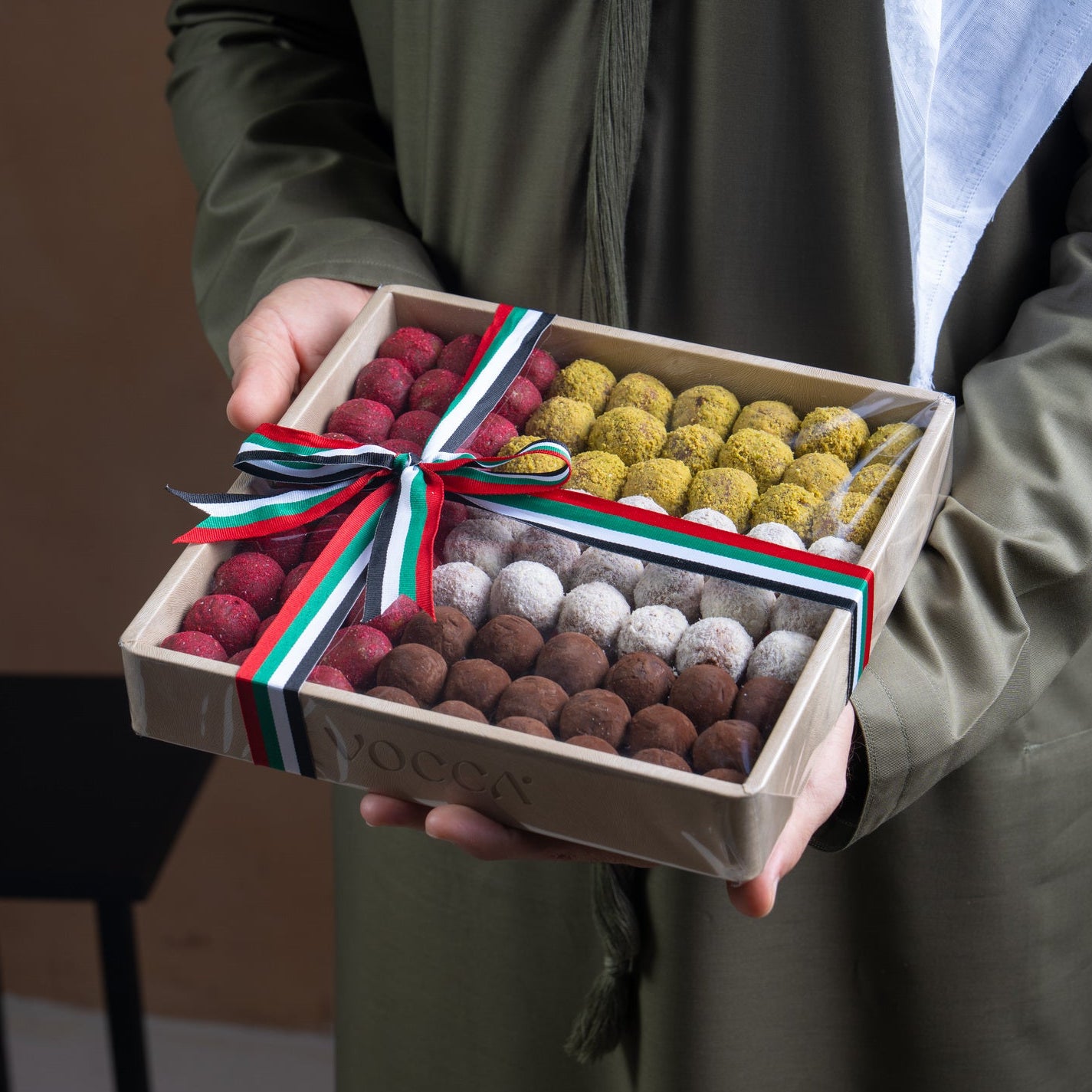 A charming platter filled with rich date balls, beautifully crafted to bring a taste of tradition and sweetness to every celebration.